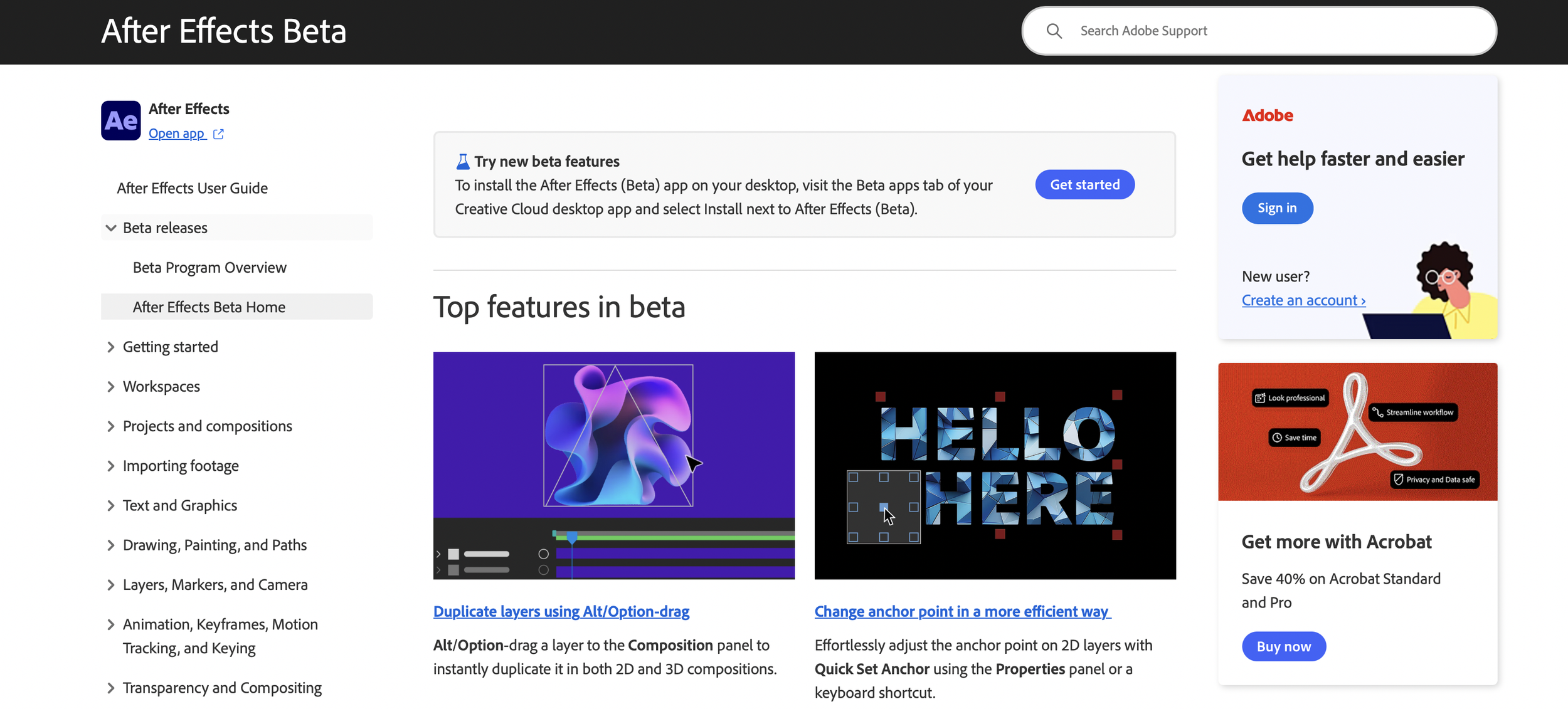 At Adobe, I led the design and introduction of a dedicated Beta knowledge base within Adobe Help documentation to support onboarding, discovery, and feedback for Beta products across Creative Cloud.